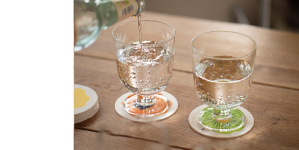 グラス越しに透けて見えるPOPなカラーが、テーブルに軽やかなアクセントをプラス。マグカップのソーサー代わりとして使えば、ちらりと覗く柄が愛らしく、コーヒーやティータイムをより楽しい時間にしてくれます。