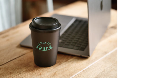 タンブラーの表裏には2つのロゴを配置。片面には「THE BOYFRIEND」ロゴ、もう片面には作品中に登場するCOFFEE TRUCKのロゴをあしらいました。